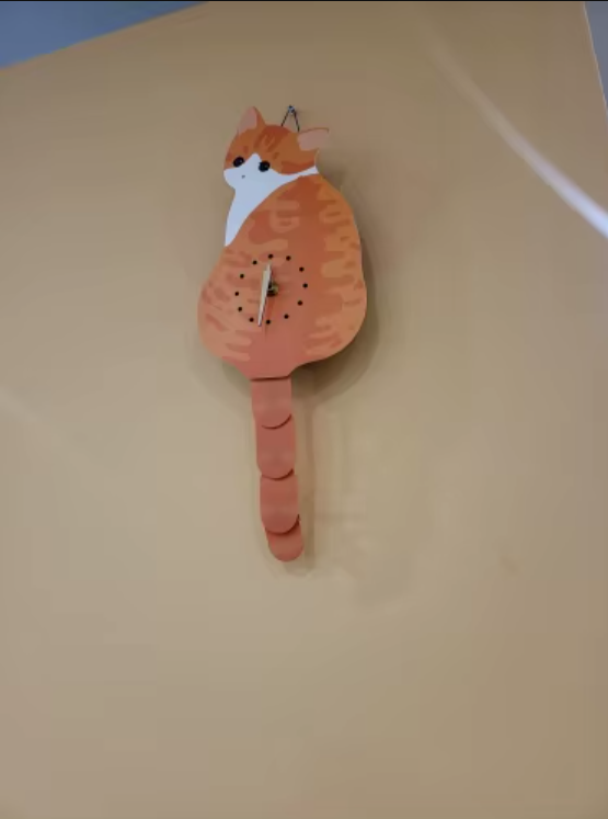 🐾 Charming Swinging Tail – A playful touch that brings the clock to life.