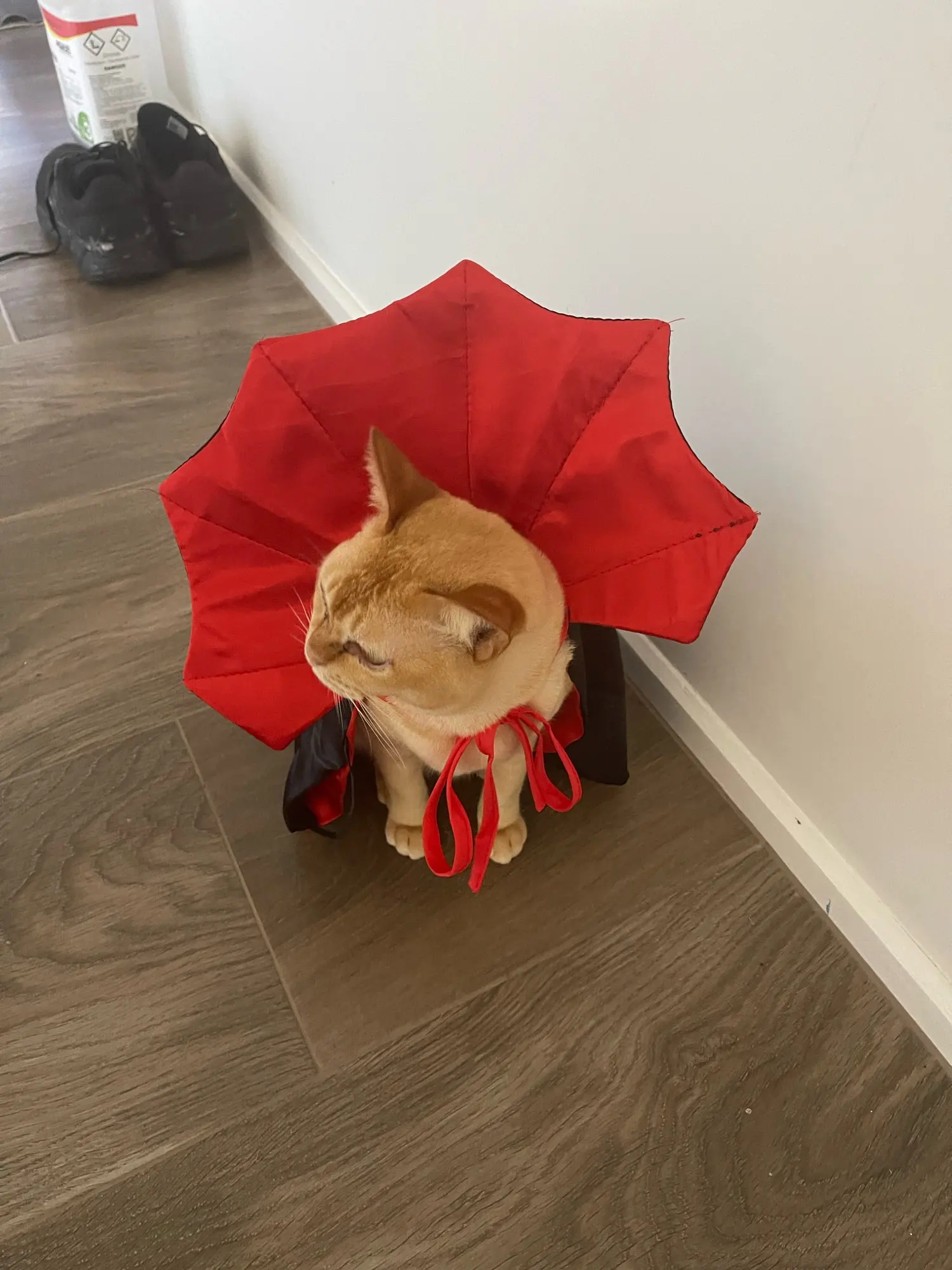 Absolutely enchanting! My cat looked like true royalty in the Vampire in this Halloween Costume. The attention to detail is remarkable, from the perfectly fitted cape to the intricate collar. My cat was comfortable and looked stunning at our Halloween party. This costume is a must-have for any cat lover!