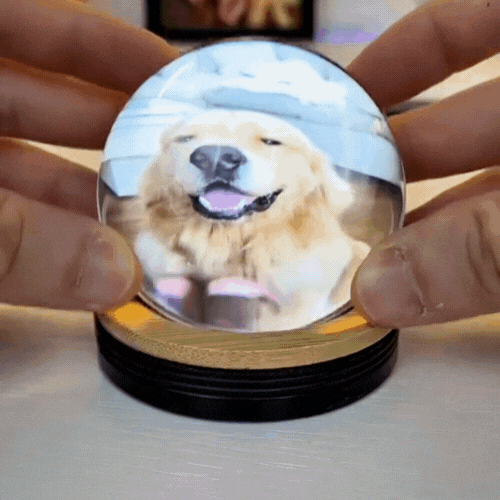 FurSphere™ is a stunning 3D crystal ball with a built-in screen that plays your personalized video. Just plug it in via USB-C, upload your file, and watch the magic.